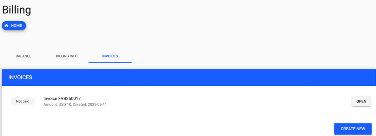 A new Invoices tab has been added, giving you easy access to your invoice list and generation tools. You can now preview invoice details directly from TCP via a secure link to the invoicing system. Once an invoice is paid, your organization's wallet is automatically topped up – streamlining the billing process from end to end.
