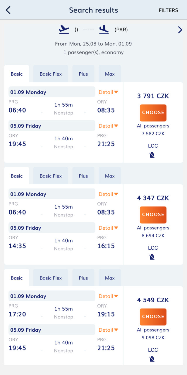 - Displays matching travel results instantly in the app